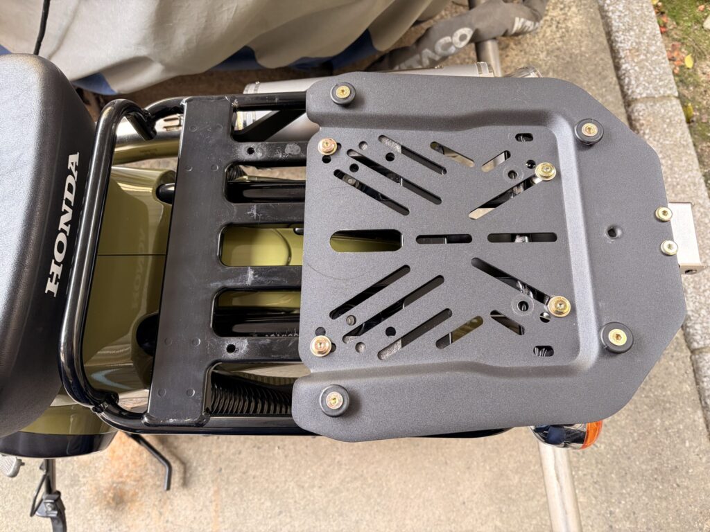 そんなわけで、どのくらいの前後位置にこのケースをつけるかによって、クロスカブのキャリアにどう取り付けるかっていうのが決まってきます。