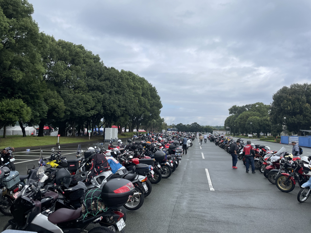 バイクの入場の列は別ルートで駐車スペースに進んでいて、まるで祭りのような熱気に包まれていました。