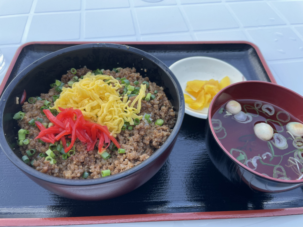 昨年はカレーを食べましたが、今年は他のお客さんが食べておられるのを見て、「赤牛そぼろ丼」を注文。