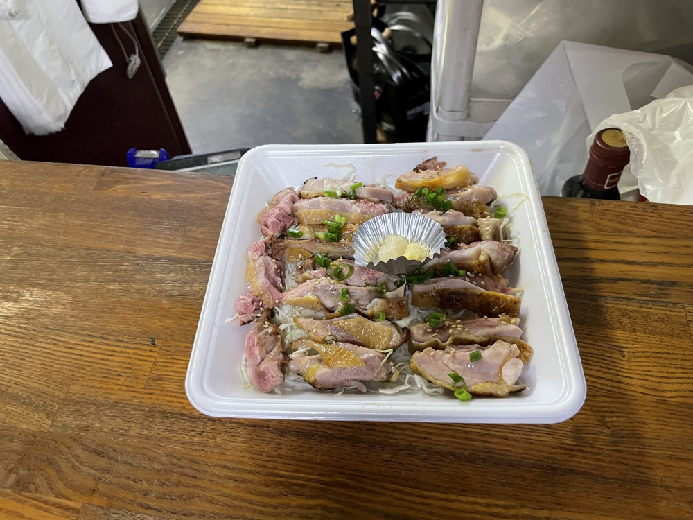 日田で鳥のたたきと唐揚げを買ってお土産にしました。
