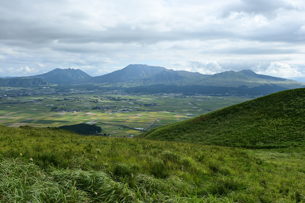 この展望台「南阿蘇パノラマライン展望所」から見下ろす景色は、まさに阿蘇の象徴といえます。