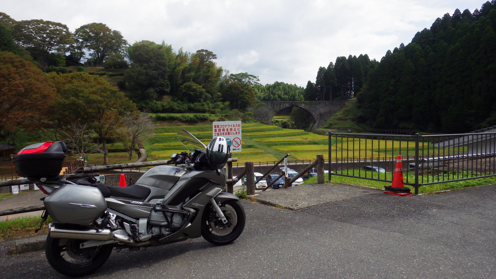 今年は上の駐車場からバイクと一緒に通潤橋も撮影しました。