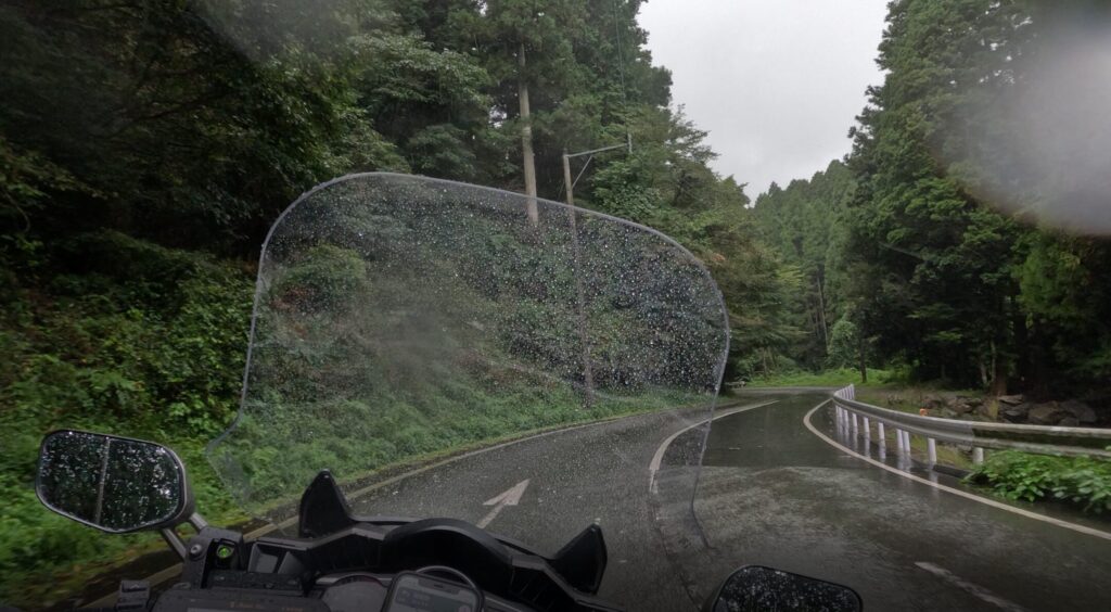 やがて通潤橋に近づくにつれ、雨はやみ路面も乾いてきました。