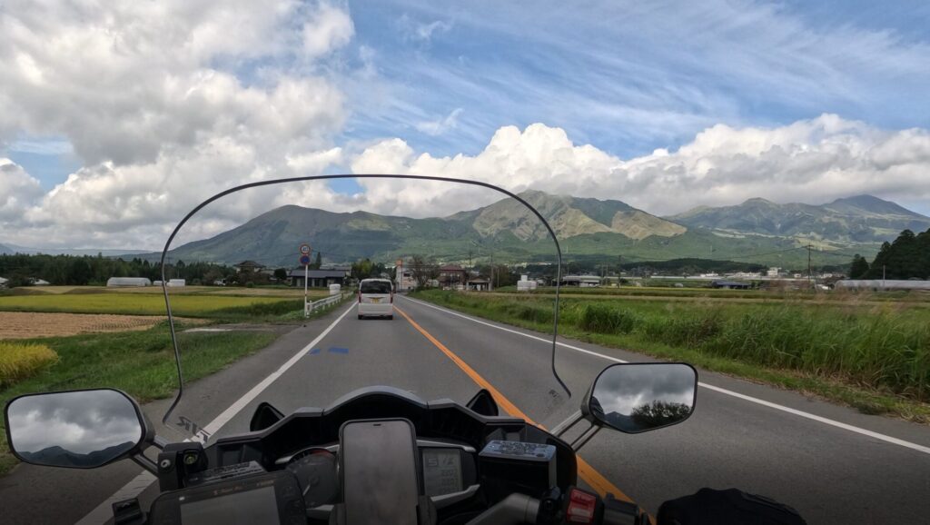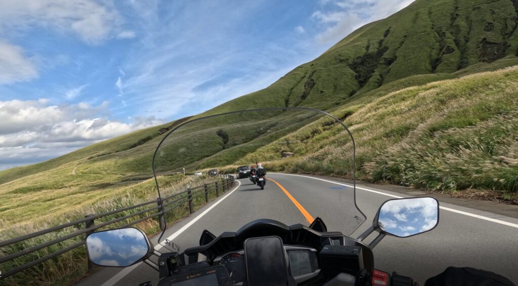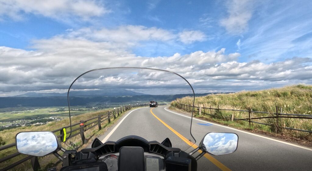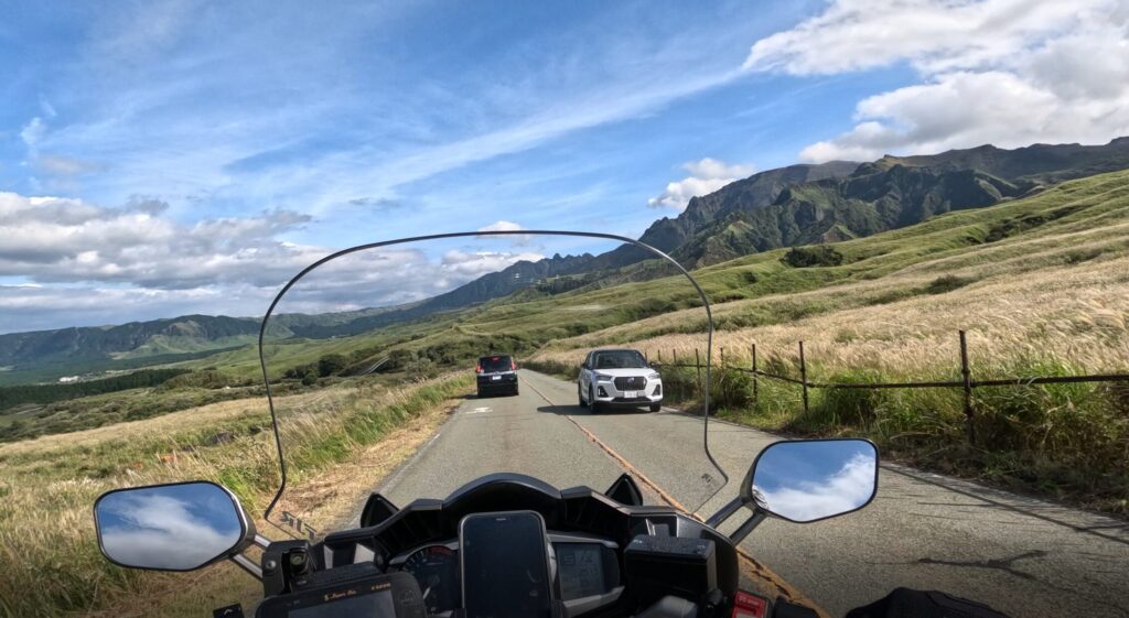 内牧温泉を抜け、大観峰へ登る道はゆるやかなカーブが続き、リズムよく走れます。