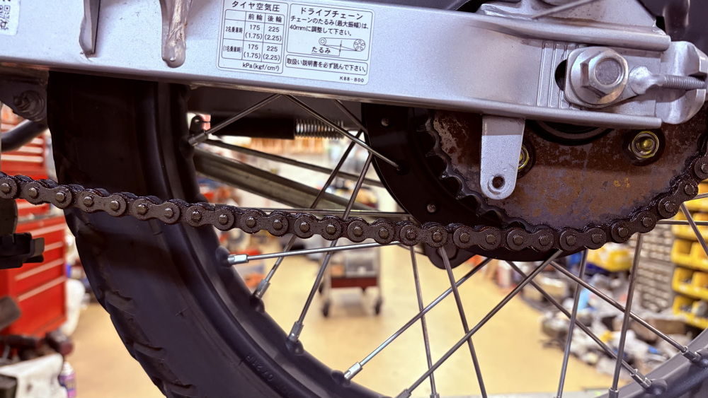 せっかくなので、チェーンの張り調整とオイル注油をしてもらいました。