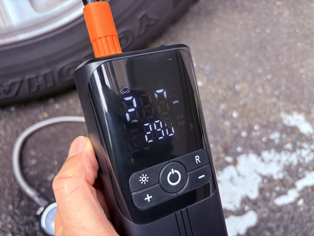 数十回もポンピングすると腕が疲れる上に時間もかかりましたが、この電動空気入れなら朝の出かける前でもストレスなく点検できます。