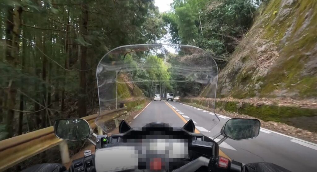 • 南畑ダム横のくねくね道で減速しながらコーナーを楽しむ